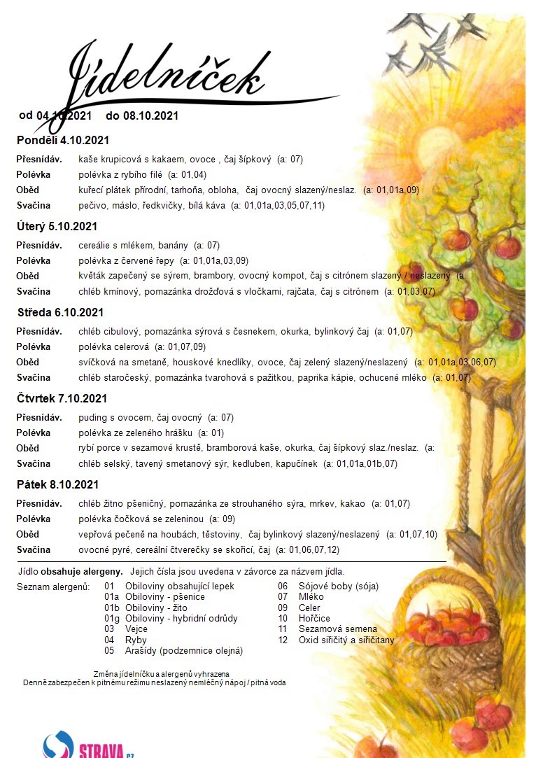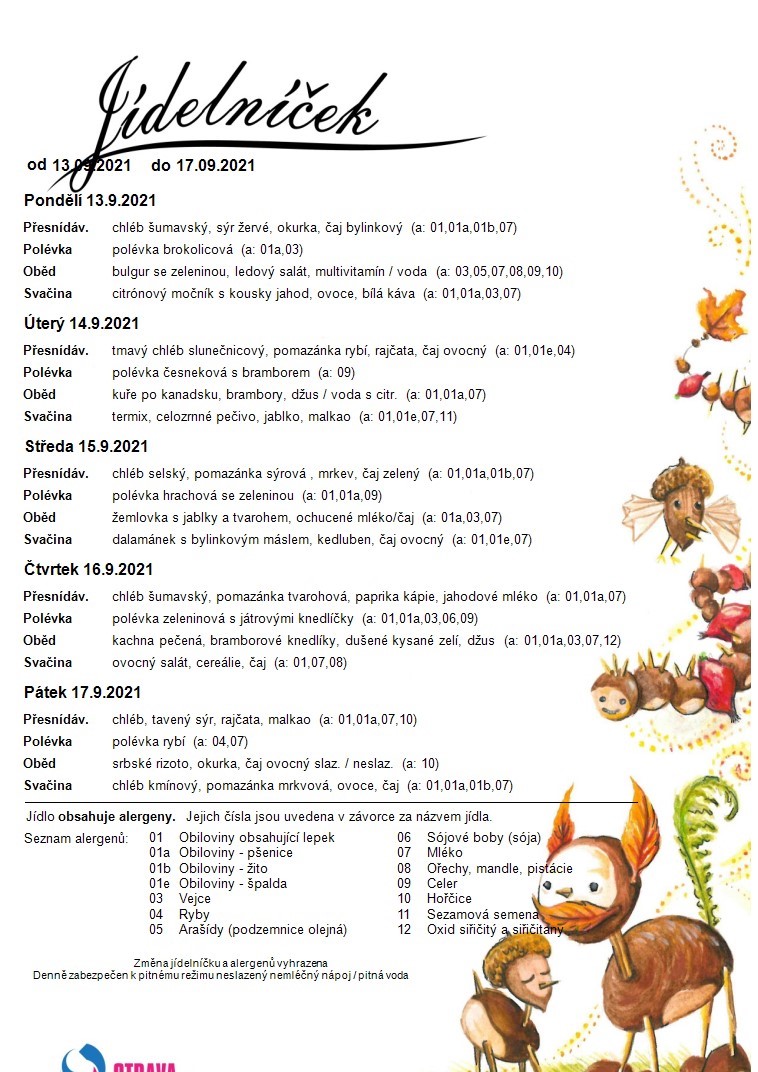DODATEČNÝ ZÁPIS DO MŠ PRO ŠKOLNÍ ROK 2021/2022 SE KONÁ : 25.10.2021 – 8:00 - 12:00 hod. 26.10.2021 – 8:00 - 12:00 hod. 27.10.2021 – 13:00 - 16:00 hod. S sebou k zápisu zákonní zástupci přinesou občanský průkaz, rodný list dítěte, žádost o přijetí dítěte potvrzenou od lékaře, kopii očkovacího průkazu. Zápis se koná v ZŠ